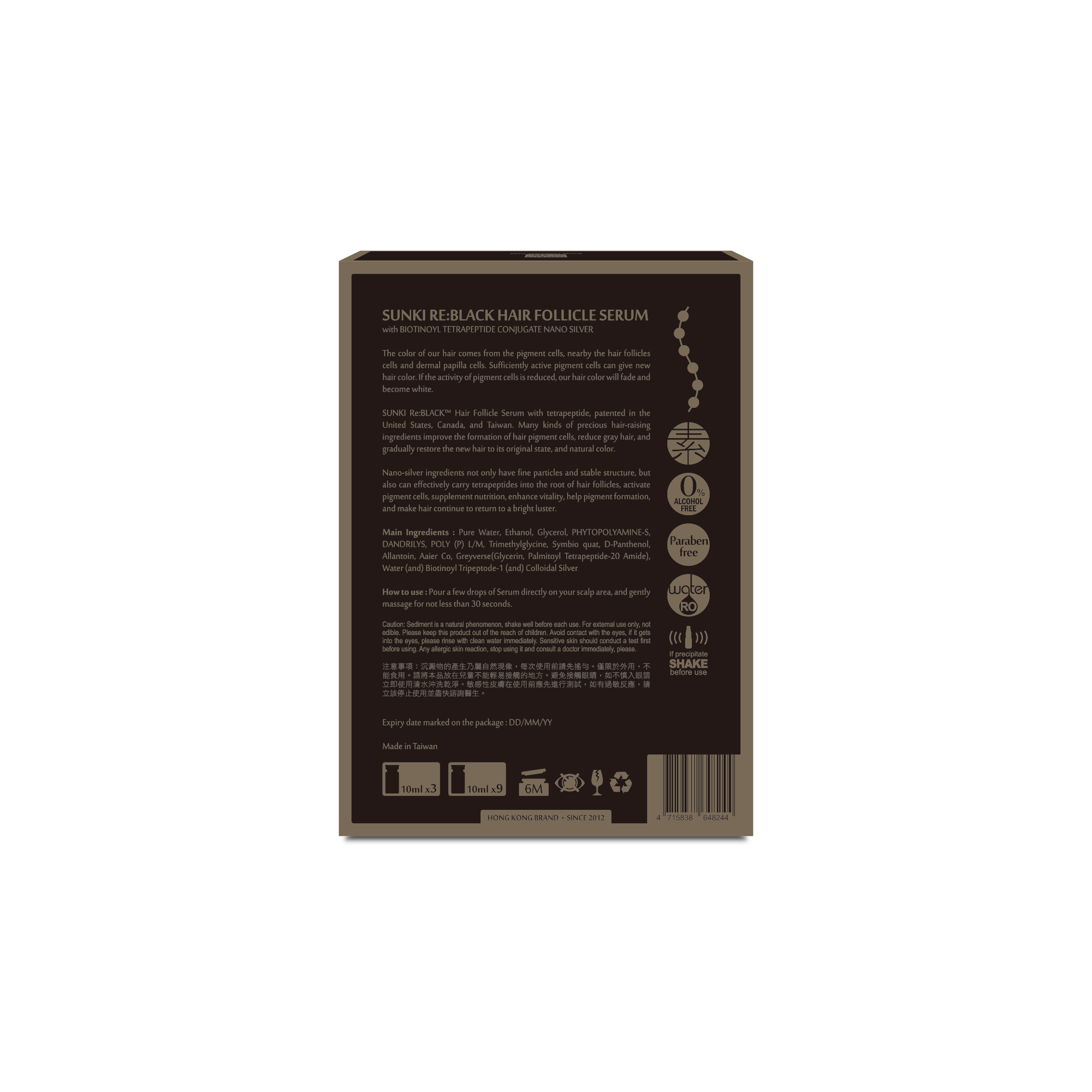 主要成份:純水、乙醇、甘油、Phytopolyamine-s、DANDRILYS、聚合物(P)L/M、三甲基甘氨酸、Symbio quat、D-泛醇、尿囊素、Aaier Co、Greyverse(甘油、水、棕櫚醯四肽-20酰胺)、生物素銅三肽-1及膠銀。